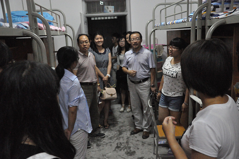 8月28日晚七点,suncitygroup太阳新城院长胡伟华、党委副书记付刚、2015级辅导员周晓惠,走访了学院2015级所有学生宿舍,看望新同学并对他们生活情况作了详细的了解。
