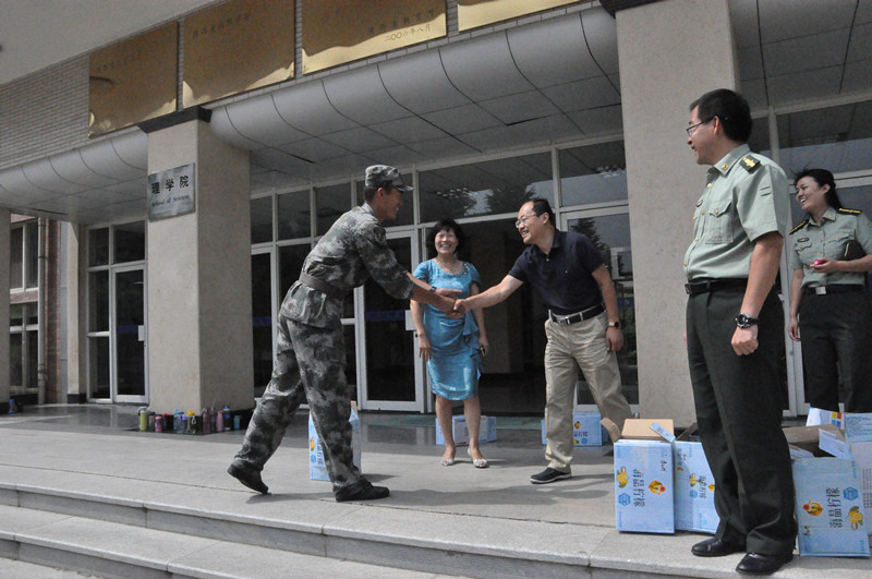 9月7日上午,suncitygroup太阳新城院长胡伟华、党委书记徐利兰、副书记付刚在2015级辅导员周晓惠的陪同下来到新生军训现场,慰问承训教官及受训新生。