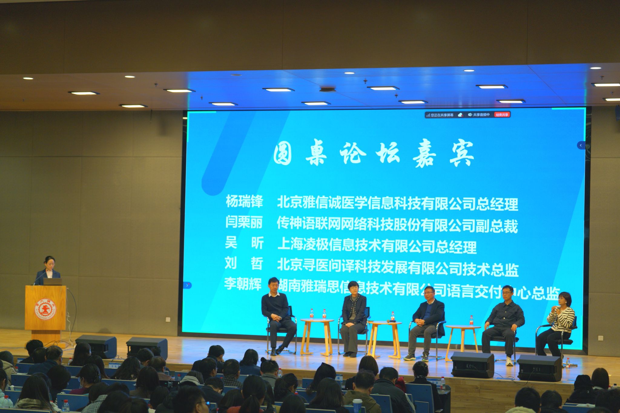 在广东外语外贸大学陈庆副教授主持的“智语医言:语言服务与国际传播”圆桌论坛中,来自雅信诚、传神语联网、寻医问译等相关企业代表与现场专家、观众进行了深入交流,共同剖析技术赋能语言服务的关键挑战与可行路径,为从业者提供了前瞻性的发展指引。