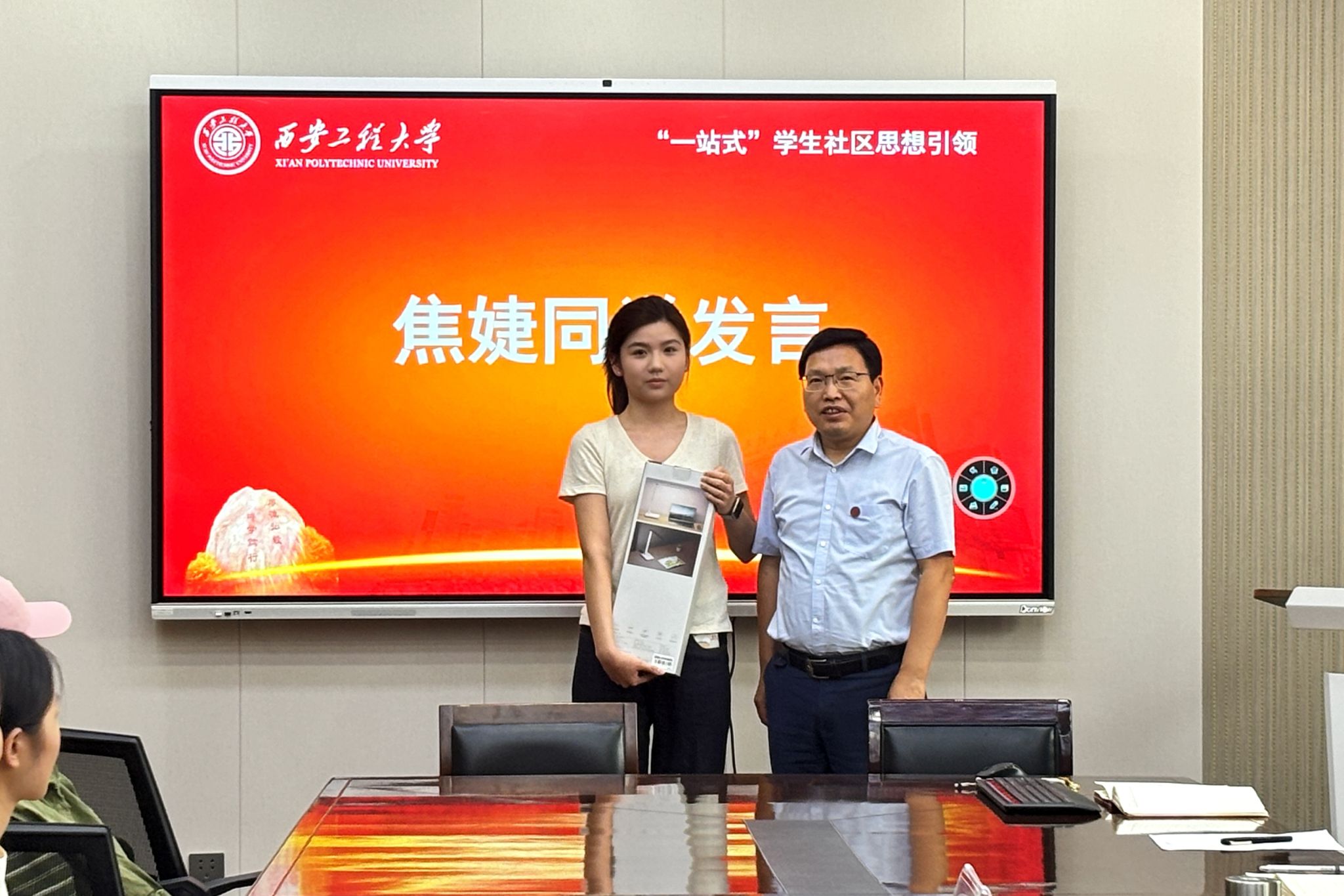 纪念情深寄远行,定格光影暖长存。为表达对毕业生的深情祝福与殷切期望,院党委书记李喜峰代表学院向焦婕同学及毕业生代表们赠送了精心准备的纪念品。这份承载着母院牵挂与祝福的礼物,寄托着“饮水思源”、常回家看看的温情期盼。