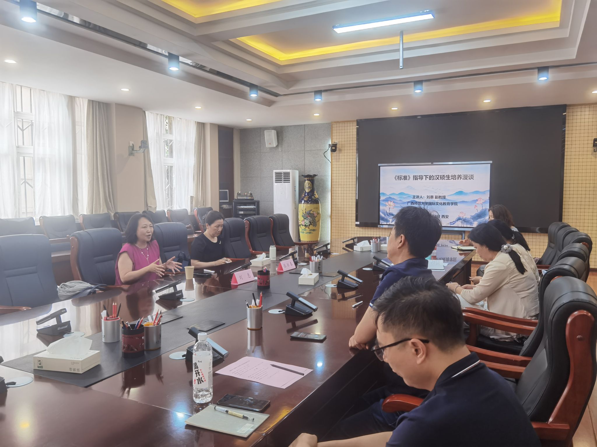 会上,国际中文教育专业副教授马瑞介绍了国际中文教育硕士学位点建设总体情况,刘惠教授和张怡春教授聚焦学位点建设要求,围绕人才培养方案、课程设置、学科方向等方面提出了意见建议,分享了“语言+”的建设思路。与会人员就国际中文教育硕士学位点的建设思路、建设现状、师资队伍、条件资源优化、科研成果培育等方面存在的问题及下一步改进的思路进行了深入交流。