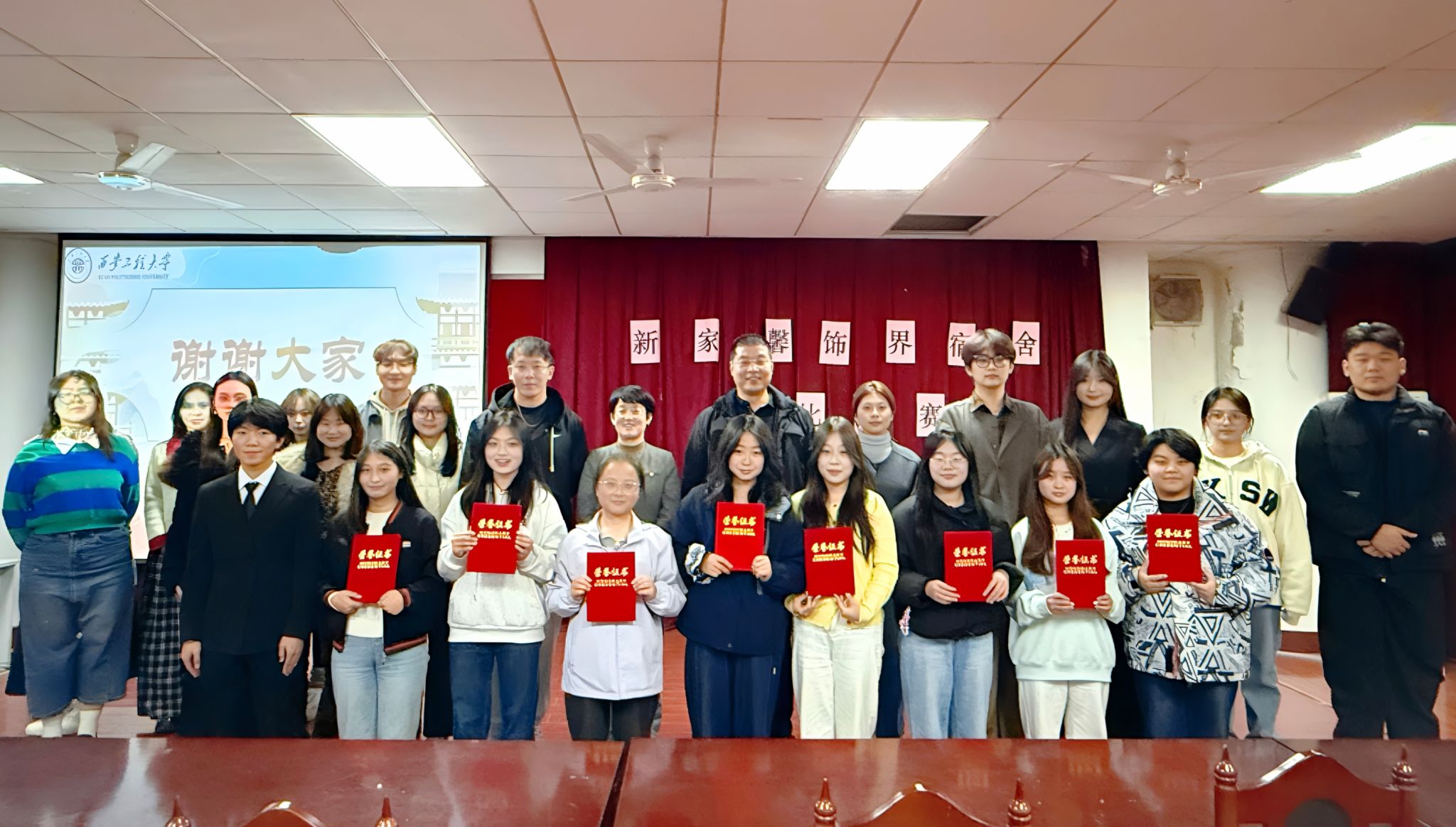经过评委综合评议,最终评选出一等奖、二等奖、三等奖若干名,评委老师为获奖宿舍代表现场颁发荣誉证书并合影留念。
