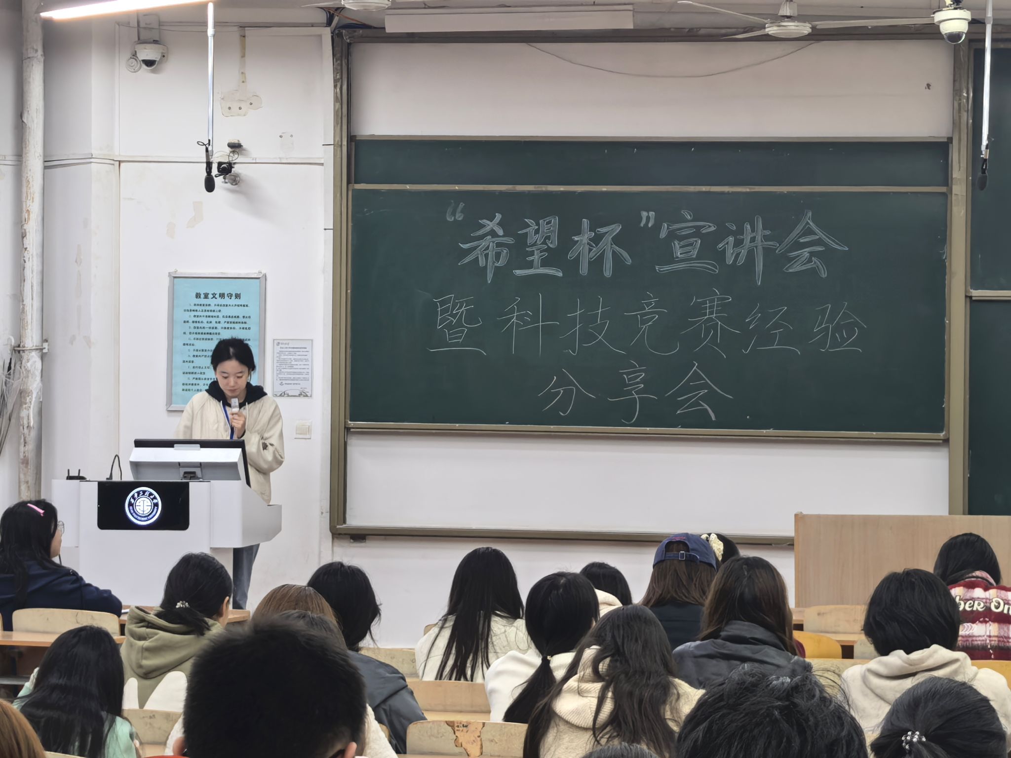 为深入学习贯彻习近平新时代中国特色社会主义思想,全面落实“科技是第一生产力、人才是第一资源、创新是第一动力”的重要论述,引导青年学子以科创实践锤炼创新思维、提升综合素养,suncitygroup太阳新城于11月3日晚19:00在教学楼B-137召开“希望杯”宣讲会暨科技竞赛经验分享会。本次活动邀请学生代表瞿福榕、霍若木、王一凡担任主讲人,学院2025级全体本科生、2024级部分学生及研究生踊跃参会。