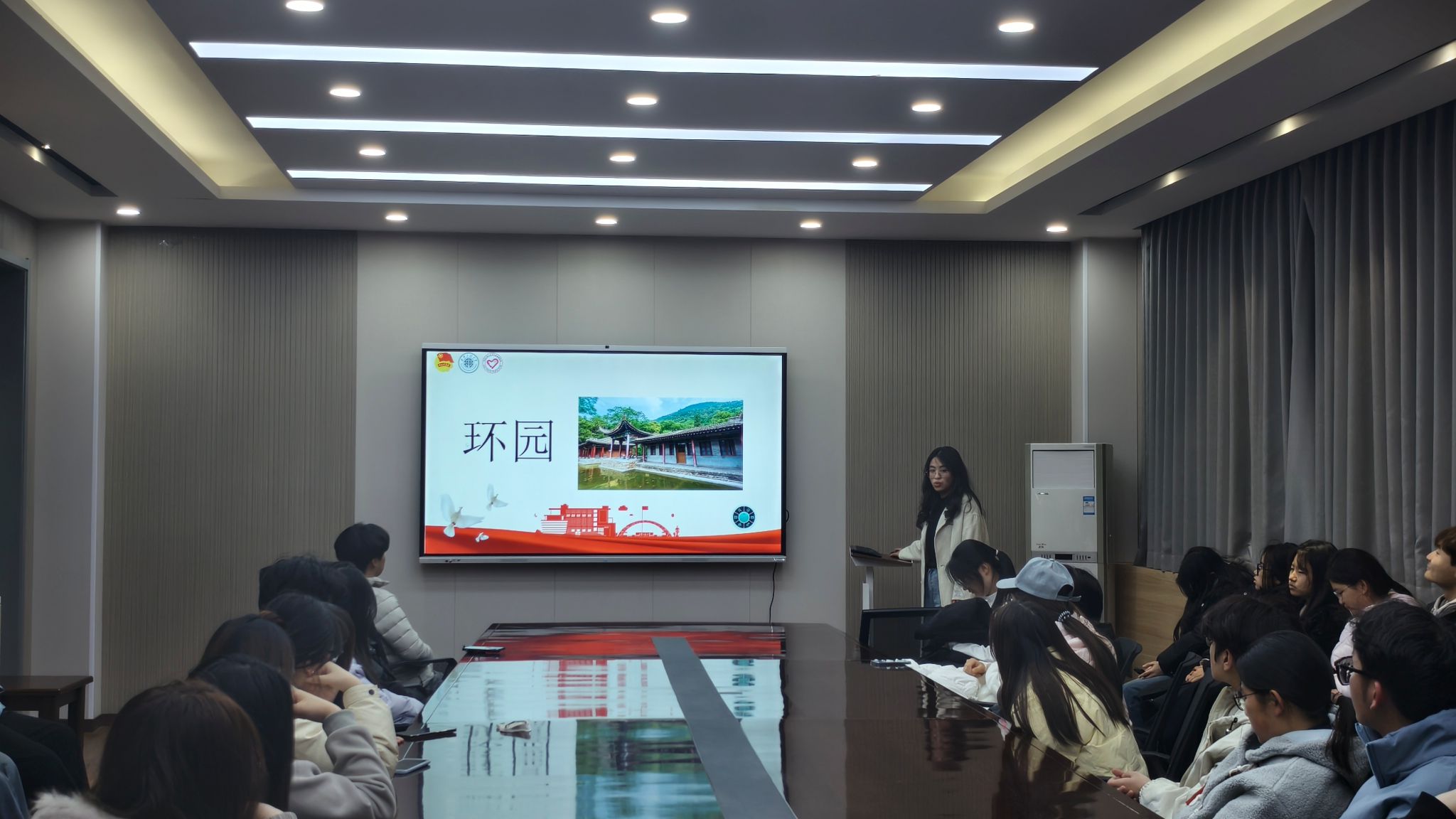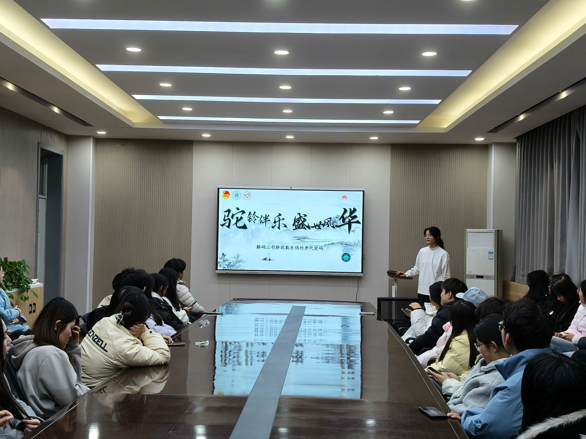宣讲环节中,校青协文博志愿服务队的四位志愿者依次登台分享。他们分别以盛唐园林、古代玉玺、唐三彩及环园为主题,用生动鲜活的语言搭配详实史料,深入解读唐代造园艺术的美学意蕴,剖析玉玺作为权力象征的历史内涵,展现唐三彩的精湛工艺与文化价值,梳理环园与西安事变的深刻历史联结。