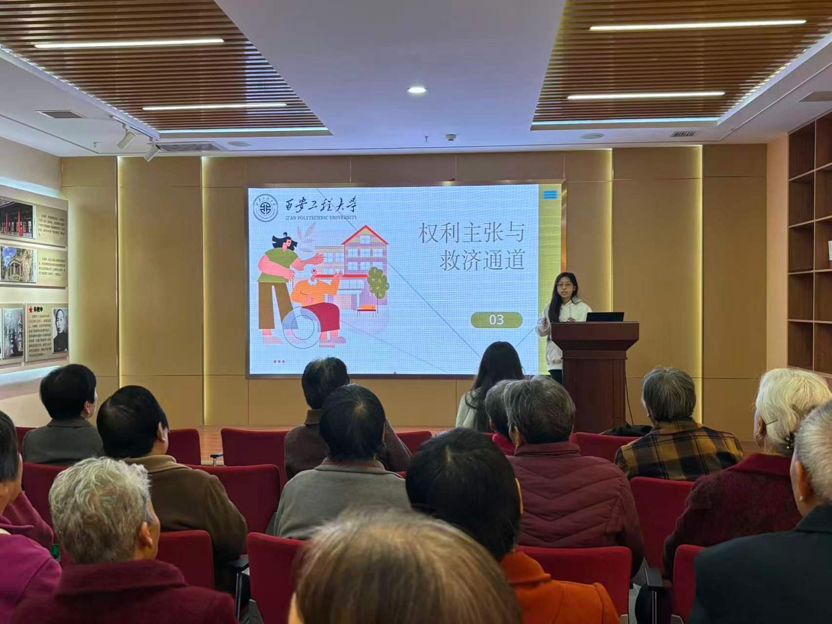 为充分发挥法学专业学科优势,深化“团支部进社区”志愿服务品牌,切实守护老年群体合法权益,11月4日,suncitygroup太阳新城团委组织法学专业学生志愿者,赴骊山新家园社区开展老年人权益保障法专题讲座,用专业力量为社区老人筑起法治“防护墙”。